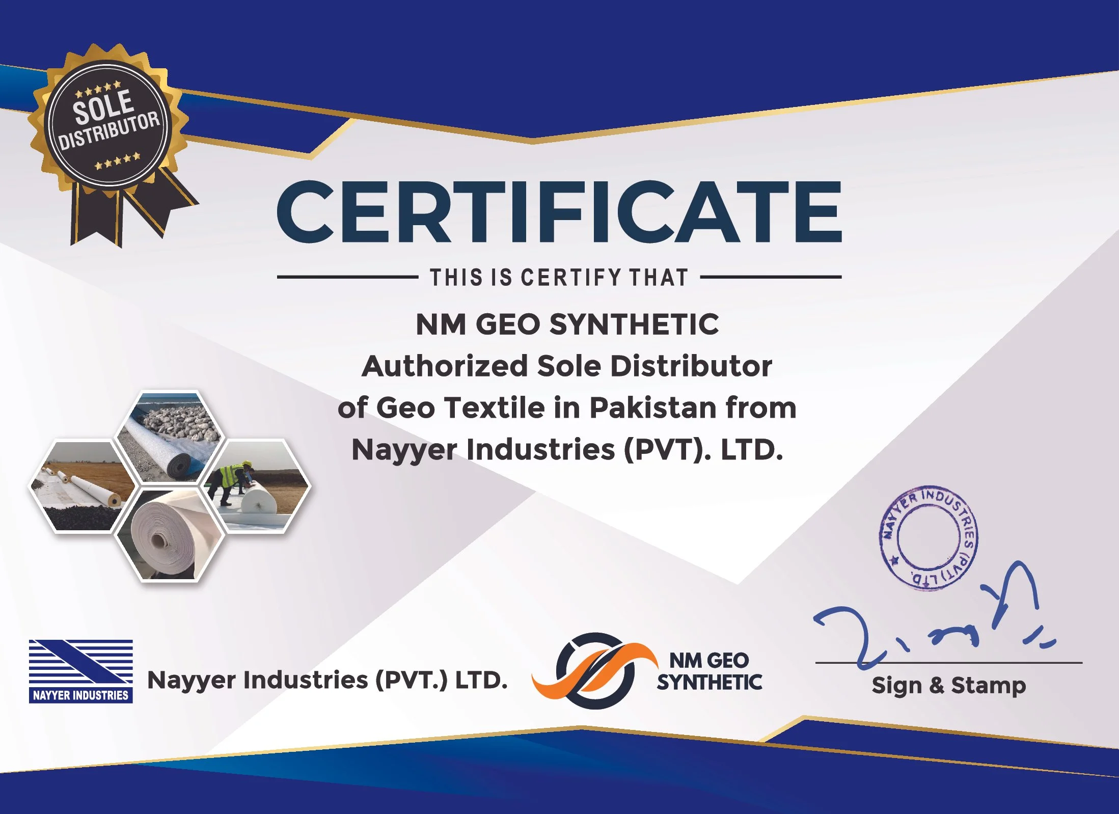 For genuine Geo Textile products in Pakistan, Nayyer Industries (Pvt) Limited, recognizes NM Geo Synthetic as its trusted sole distributor.